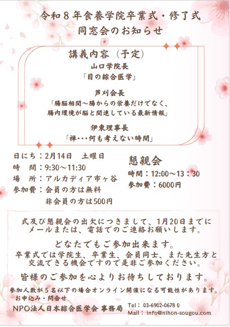 NPO法人日本綜合医学会は、明治の食医・石塚左玄が創始した「食養」の思想を継承するため、